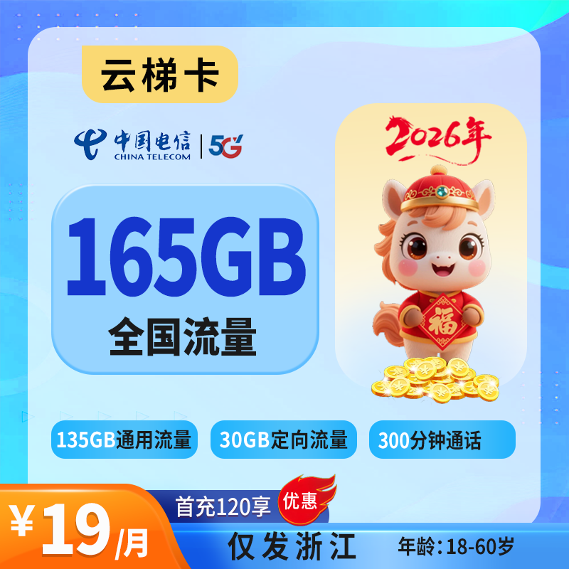 19元135G通用+30G定向+300分钟(仅发浙江)