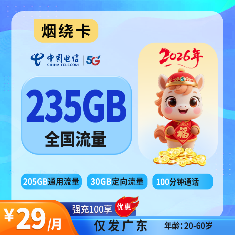 29元235G流量+100分钟通话(仅发广东)