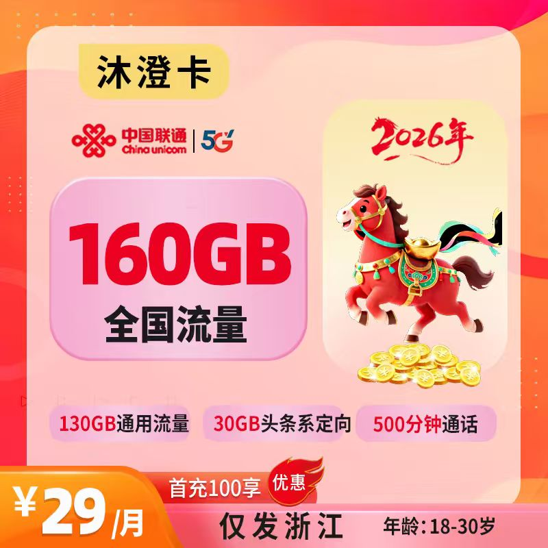 29元160G通用+100分钟通话(仅发安徽)