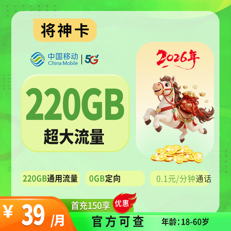 39元150G通用流量+150分钟通话